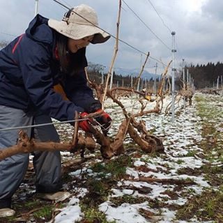 ヤマソーヴィニヨンの剪定を行いました。どの枝を残し、どう育てさせるかを想像しながら枝を切りました。